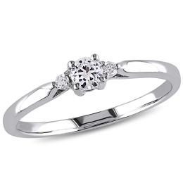 Julianna B 10K White Gold Created White Sapphire & Diamond Engagement Ring