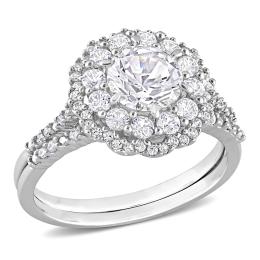 JULIANNA B 10K White Gold Created White Sapphire & Diamond Bridal Set