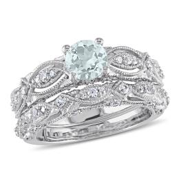 Julianna B 10K White Gold Aquamarine Created White Sapphire Diamond Bridal Set