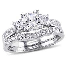 Julianna B 10K White Gold Created White Sapphire and Diamond Bridal Set