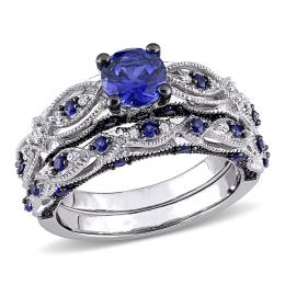 JULIANNA B 10K White Gold Created Sapphire & Diamond Bridal Set