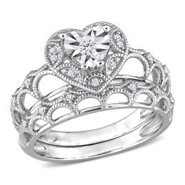 Julianna B Sterling Silver 0.10CTW Vintage Design Diamond Bridal Set