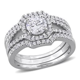JULIANNA B Sterling Silver Cubic Zirconia Halo Bridal Set