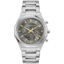 Caravelle Men's Two-Tone Stainless Steel Chronograph Date Feature Bold Blue Dial