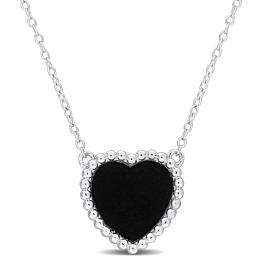 Julianna B Sterling Silver Heart Shape Black Agate Necklace