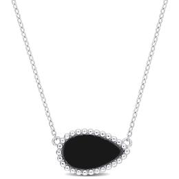 Julianna B Sterling Silver Pear Shape Black Agate Necklace