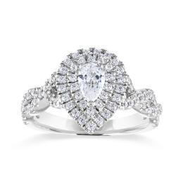 Diamond Revelations 14K White Gold Pear Shape Halo Ring 0.95CTW I2/IJ
