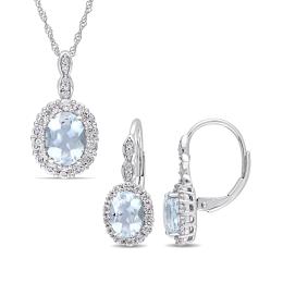 Julianna B 14K White Gold Diamond Aquamarine&White Topaz Earrings & Pendant Set