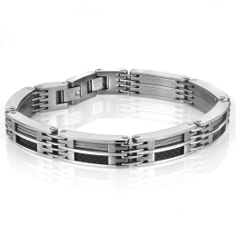 Stainless Steel 8+0.5" Black Carbon Fibre Bracelet