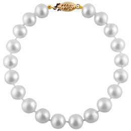 Yellow Gold 7-7.5mm White Cultured Pearl Necklace