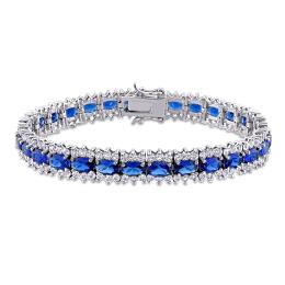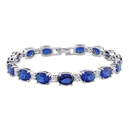 Julianna B Sterling Silver Oval Created Blue and White Sapphire Bracelet