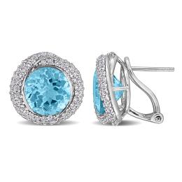 Julianna B Sterling Silver Sky Blue Topaz and White Topaz Halo Earrings