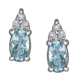10K White Gold Aquamarine & 0.05CTW Diamond Earrings