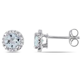 Julianna B 10K White Gold Aquamarine & Diamond Stud Earrings