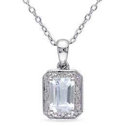 Julianna B Sterling Silver Aquamarine & Diamond Pendant with Chain