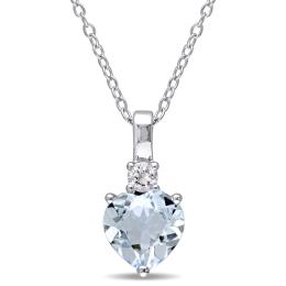 Julianna B Sterling Silver Aquamarine & Diamond Heart Pendant with Chain