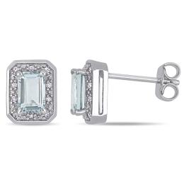 Julianna B Sterling Silver Aquamarine & Diamond Earrings