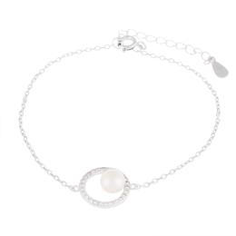 Julianna B Sterling Silver Created White Sapphire & 6-6.5MM Pearl Ring