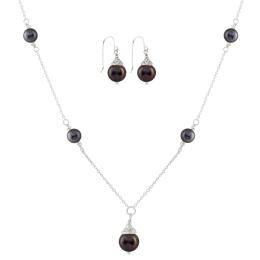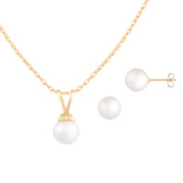 Sterling Silver White Freshwater Pearl Heart Shaped Pendant and Earrings