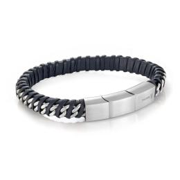 Stainless Steel Curb Link Twisted Leather Bracelet