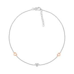 Bella Moda Sterling Silver & 10K Rose Gold Diamond Triple Heart Anklet