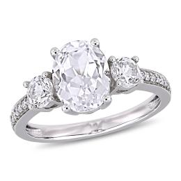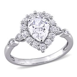 Julianna B 10K White Gold Created White Sapphire & Diamond Engagement Ring