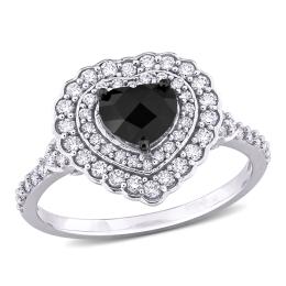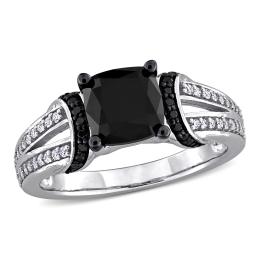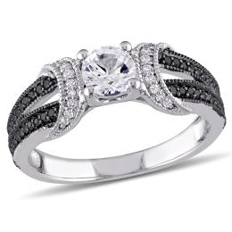JULIANNA B Sterling Silver Created White Sapphire & Black Diamond Ring