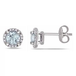10K Yellow Gold Blue Topaz & 0.07CTW Diamond Pendant with 17" Chain