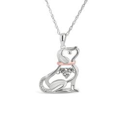 Sterling Silver 14K Rose Gold 0.008CTW Dancing Diamond Dog Pendant
