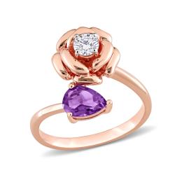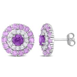 Julianna B 14K White Gold Amethyst and 0.20CTW Diamond Quatrefoil Tiered Pendant