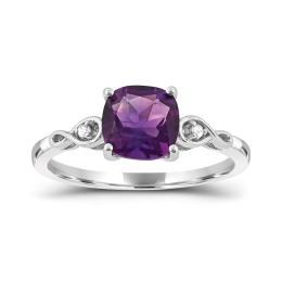 10K White Gold Amethyst & Diamond Ring