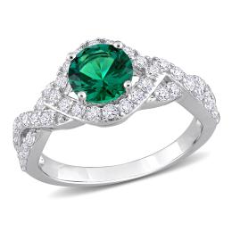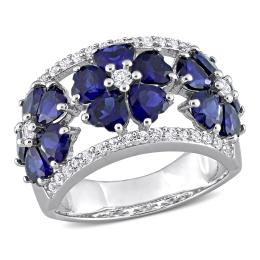 Julianna B 10K White Gold Created White Sapphire and Diamond Ring