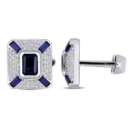 Julianna B Sterling Silver Created Blue Sapphire White Sapphire Cufflinks