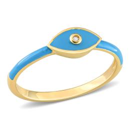 Julianna B Sterling Silver Yellow Plated Created White Sapphire Blue Enamel Ring