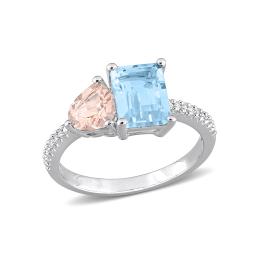 Julianna B Sterling Silver 0.10CT Diamond, Blue Topaz & Morganite Ring