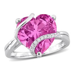 Julianna B Sterling Silver Created Pink Sapphire and Diamond Ring
