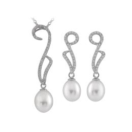 Cubic Zirconia & Pearl 2 Piece Silver Set