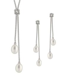 Silver Pearl Lariat Necklace