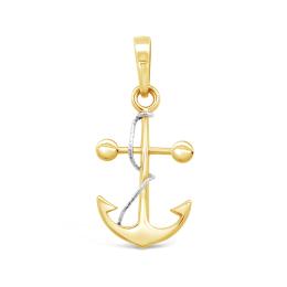 10K Yellow & White Gold Anchor Pendant (Chain Not Included)