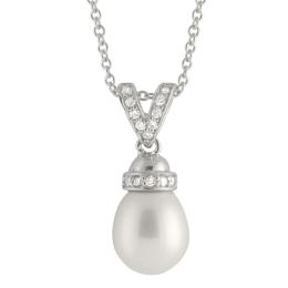 Sterling Silver 8-9mm Freshwater Pearls and Cubic Zirconia 17" Necklace