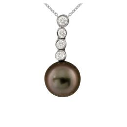 14K White Gold Diamond and Round 11mm Tahitian Pearl Pendant
