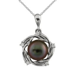 14K White Gold 8mm Tahitian Pearl & Diamond Pendant
