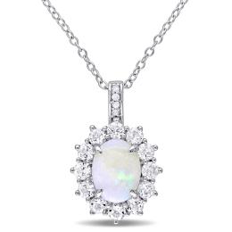 10K Yellow Gold Blue Topaz & 0.07CTW Diamond Pendant with 17" Chain