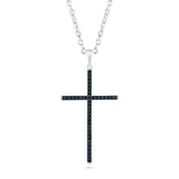 Sterling Silver 0.15CTW Black Diamond Cross Pendant