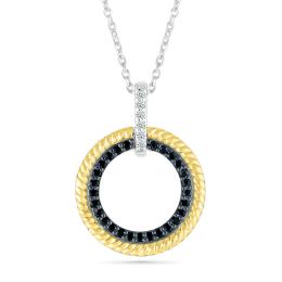 Sterling Silver 0.14CTW Black & White Diamond Circle Necklace