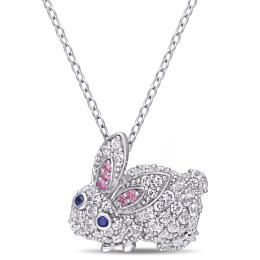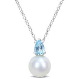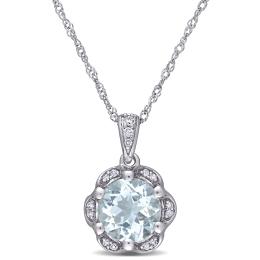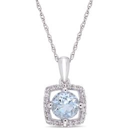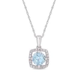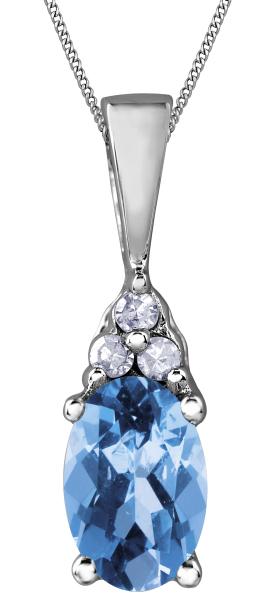10K Yellow Gold Blue Topaz & 0.07CTW Diamond Pendant with 17" Chain