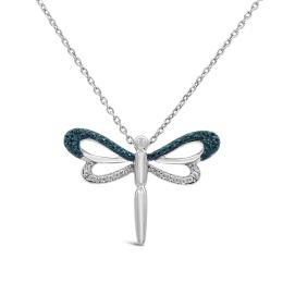 Sterling Silver Blue & White Diamond Dragonfly Pendant