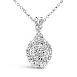 10K White Gold 0.50CTW Diamond Oval Shape Bouquet Pendant