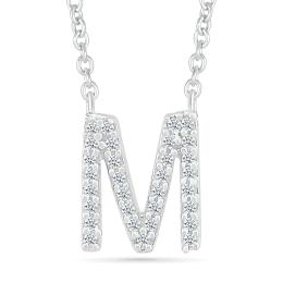 Sterling Silver & Diamond "M" Initial Necklace