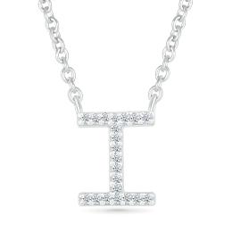 Sterling Silver & Diamond "I" Initial Necklace